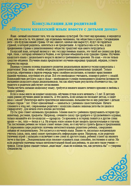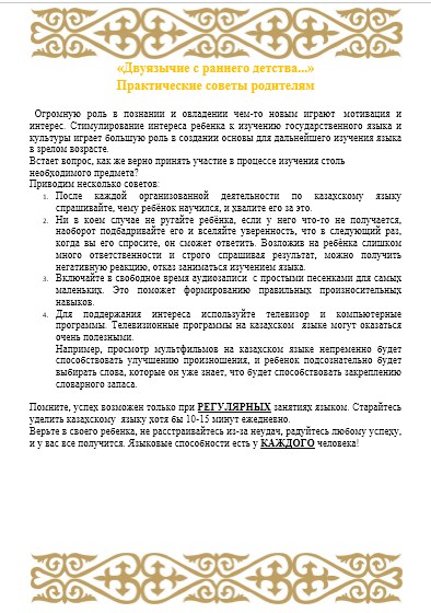 Рекомендации для родителей по изучению казахского языка с детьми дошкольного возраста